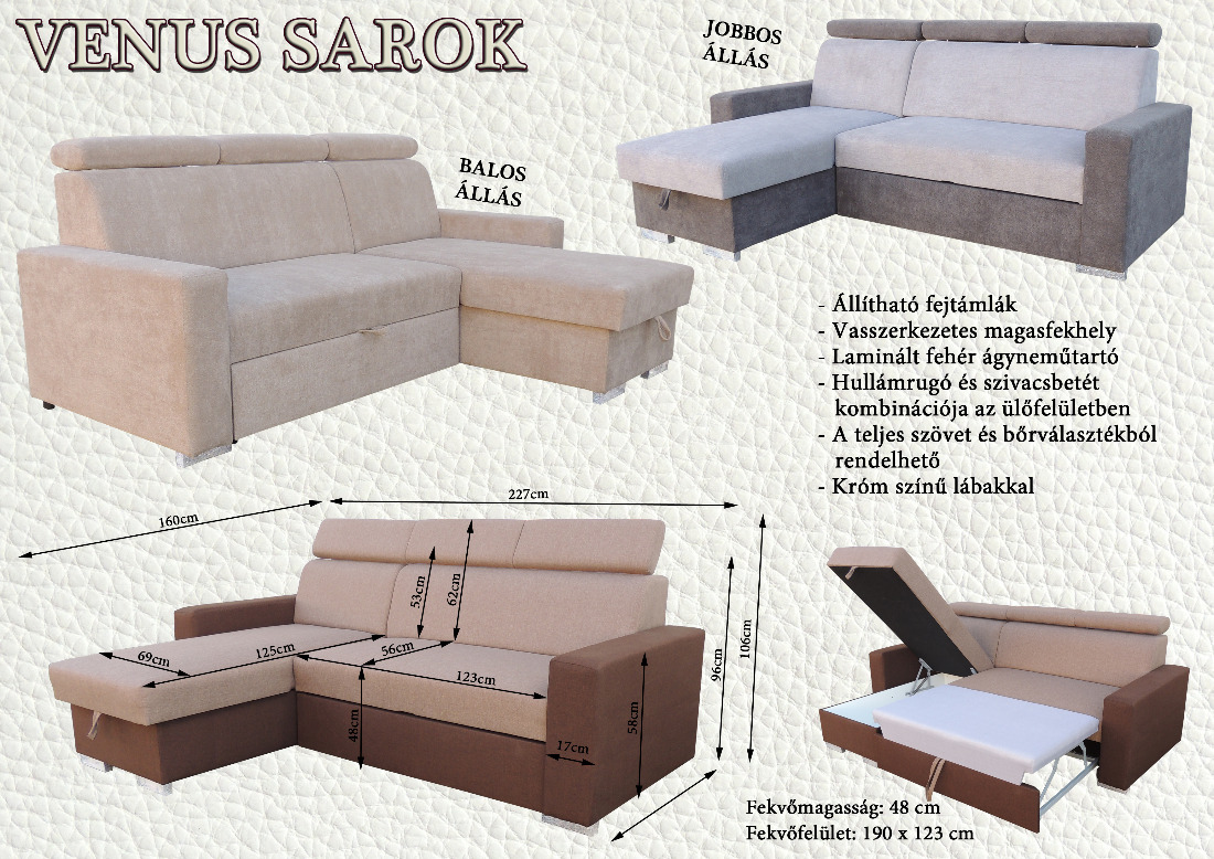 Teljes szövetválasztékunkkal rendelhető. Jobbos és balos kivitelben egyaránt.